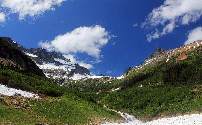 From here its a mere 7 mile hike to the end of the trail, amidst towering spires, lush green meadows and waterfalls.