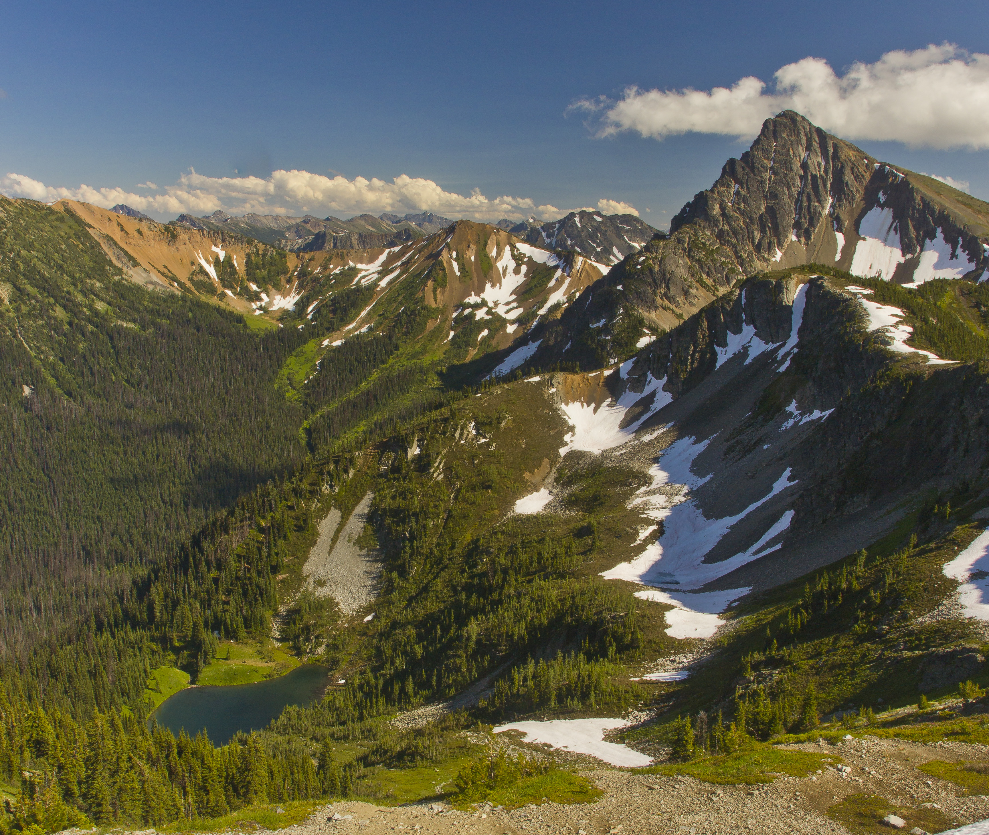 From the very start the trail is glorious: expansive views of the Pasayten peaks to the east as well as the jagged spires to the west in North Cascades National Park.