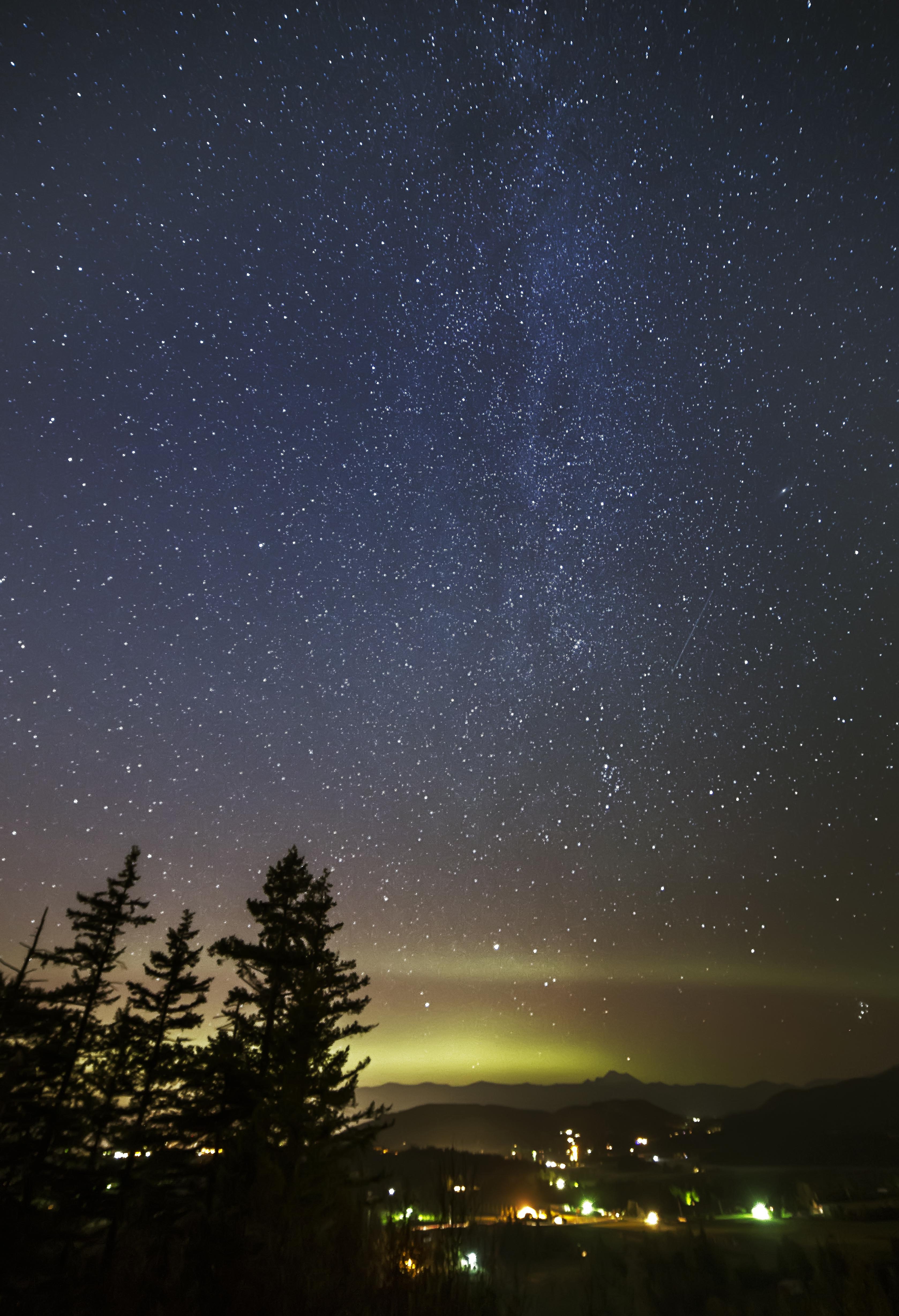 I don’t live near  big city, Seattle is 65 miles away, but there are several towns grouped together where I live. But I decided to head up to a local promontory called Big Rock to see about a few night sky images last weekend during the last New Moon.