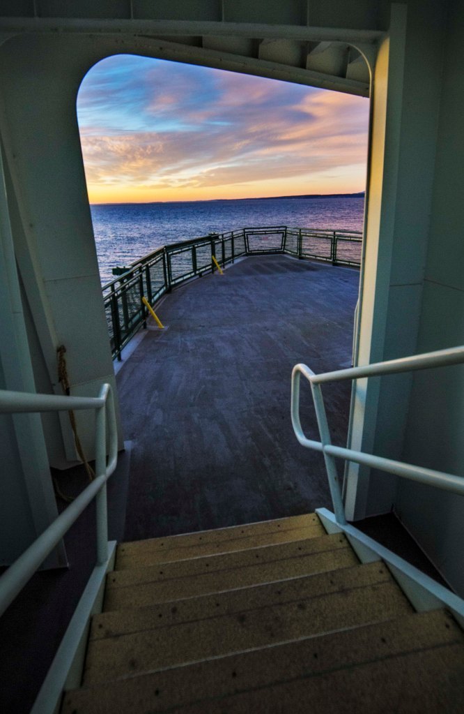 I arose at 5am and made a beeline for the ferry. My arrival at the ferry terminal was just before sunrise. The dissolving  darkness progressed from a solely black and white light show to Technicolor.