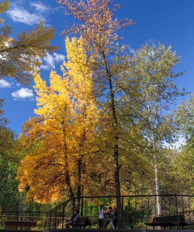 The east side of the Cascades has generally bluer skies and wonderful trees and autumn explosion of bright color.
