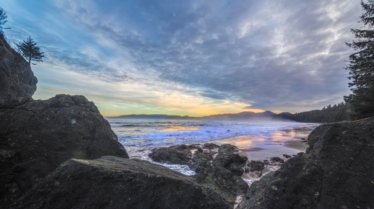 The refracted Light dancing with the low breakers bring out the Contrast along the Beach.. Facing East… the Southern Shore line hooking around and providing a nice Silhouette.. a Bonus (touch) the Solo tree on the upper Left.