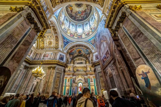 Saint Isaac’s Cathedral or Isaakievskiy Sobor (Russian: Исаа́киевский Собо́р) in Saint Petersburg, Russia, is the largest Russian Orthodox cathedral (sobor) in the city. It is the largest orthodox basilica and the fourth largest (by the volume under the cupola) cathedral in the world.[5] It is dedicated to Saint Isaac of Dalmatia, a patron saint of Peter the Great, who had been born on the feast day of that saint.