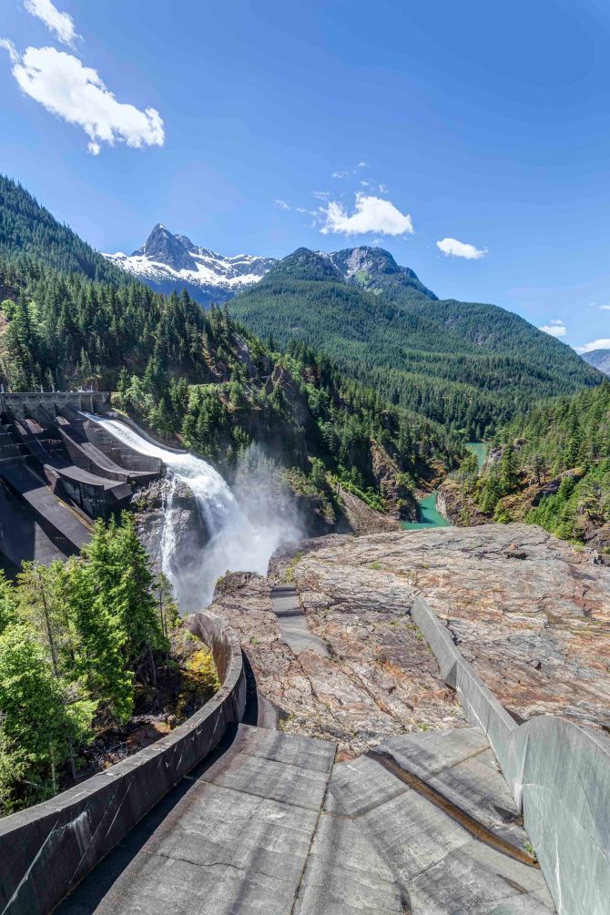 As you drive along the North Cascades Highway section of the Cascade Loop there plenty of wonderful vistas and things to see. There are three dams along the Skagit River, Diablo Dam is one of them, part of the Skagit River Hydroelectric Project that supplies Seattle with a large proportion of its power needs.