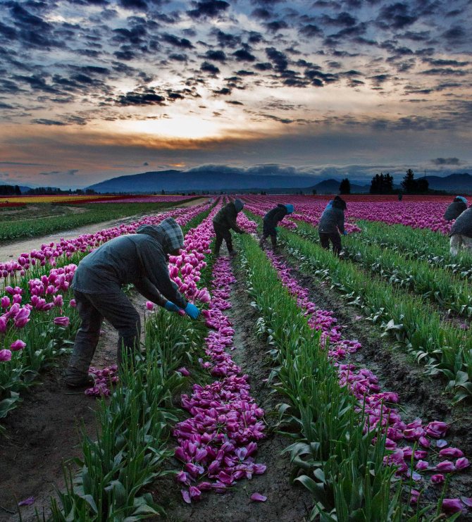 I visit the fields often, they are close by. The skies in Skagit Valley can get crazy late in the afternoon. Often the worst, rainiest days are best: the dark, heavy clouds sometimes give way to magnificent sunsets.