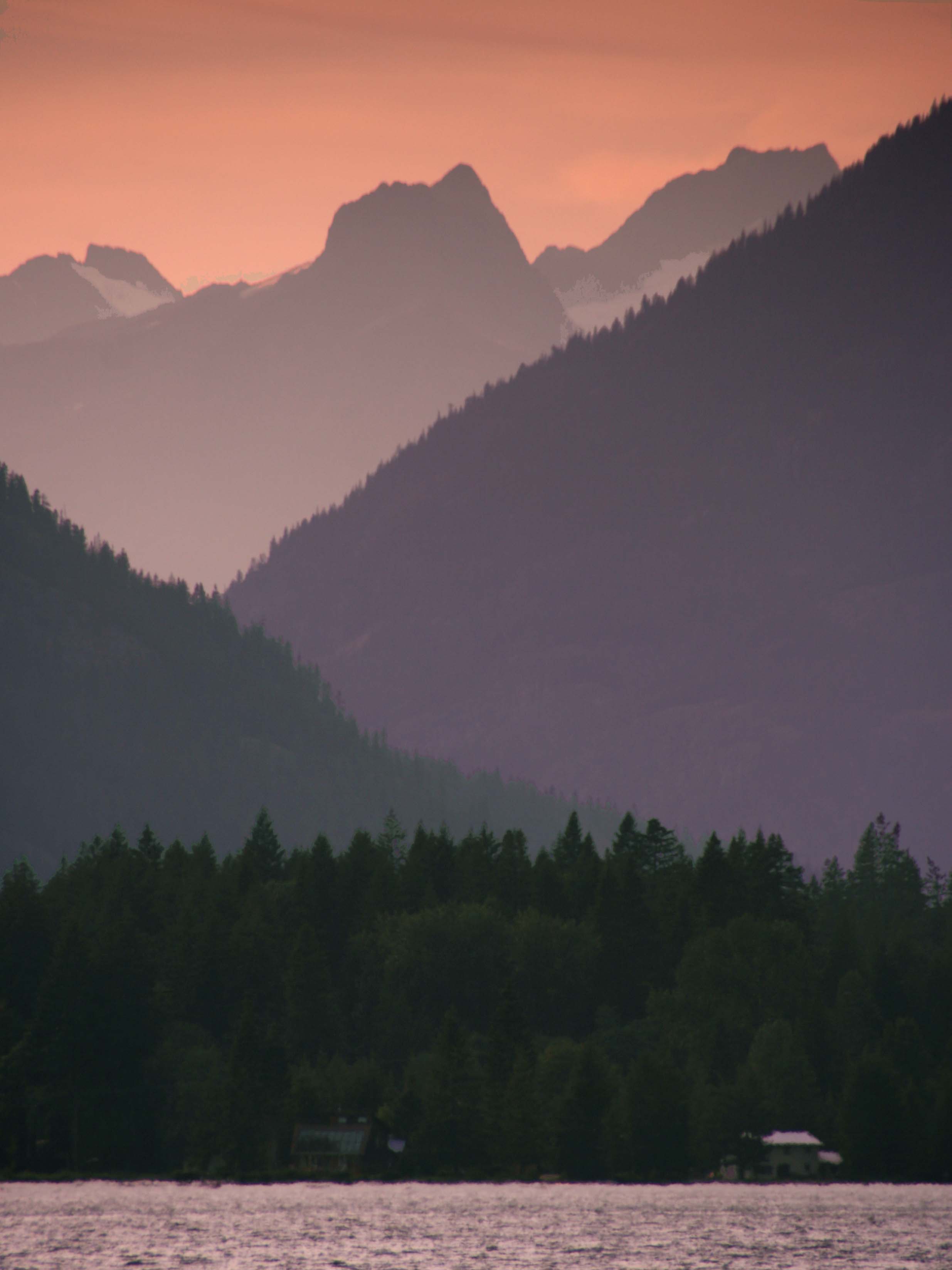 View from the dock in Stehekin, looking across Lake Chelan into the North Cascades