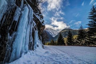 The road is gated just beyond Colonial Creek Camp Ground. There is plenty of parking and easy access for snowmobiles and anyone wanting to hike along the snow covered (and closed) highway.