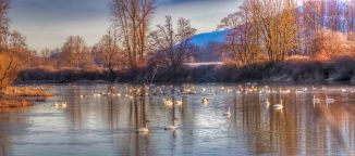 The Johnson/DeBay Swan Reserve (JDSR), near Mt. Vernon, Washington, is America’s only swan reserve. Owned by the Washington Department of Fish and Wildlife (WDFW), the Reserve was dedicated in 2001 for the public to view wintering Trumpeter and Tundra Swans.