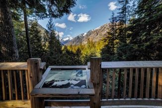 The main visitors center for the North Cascades National Park is in Newhalem. Just behind the visitors center is a short trail to a great view of the Picket Range, a particularly rugged section of the Park.