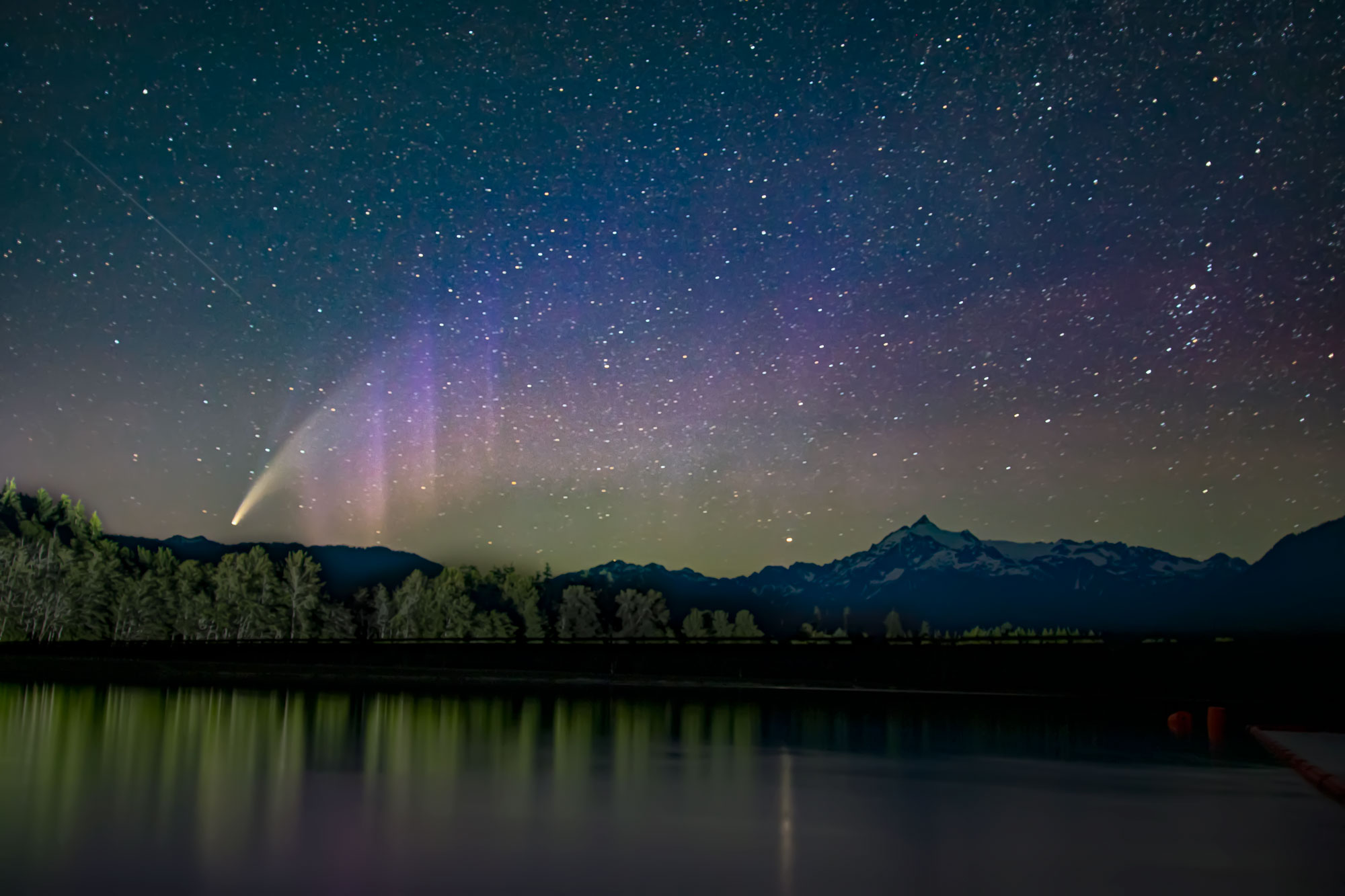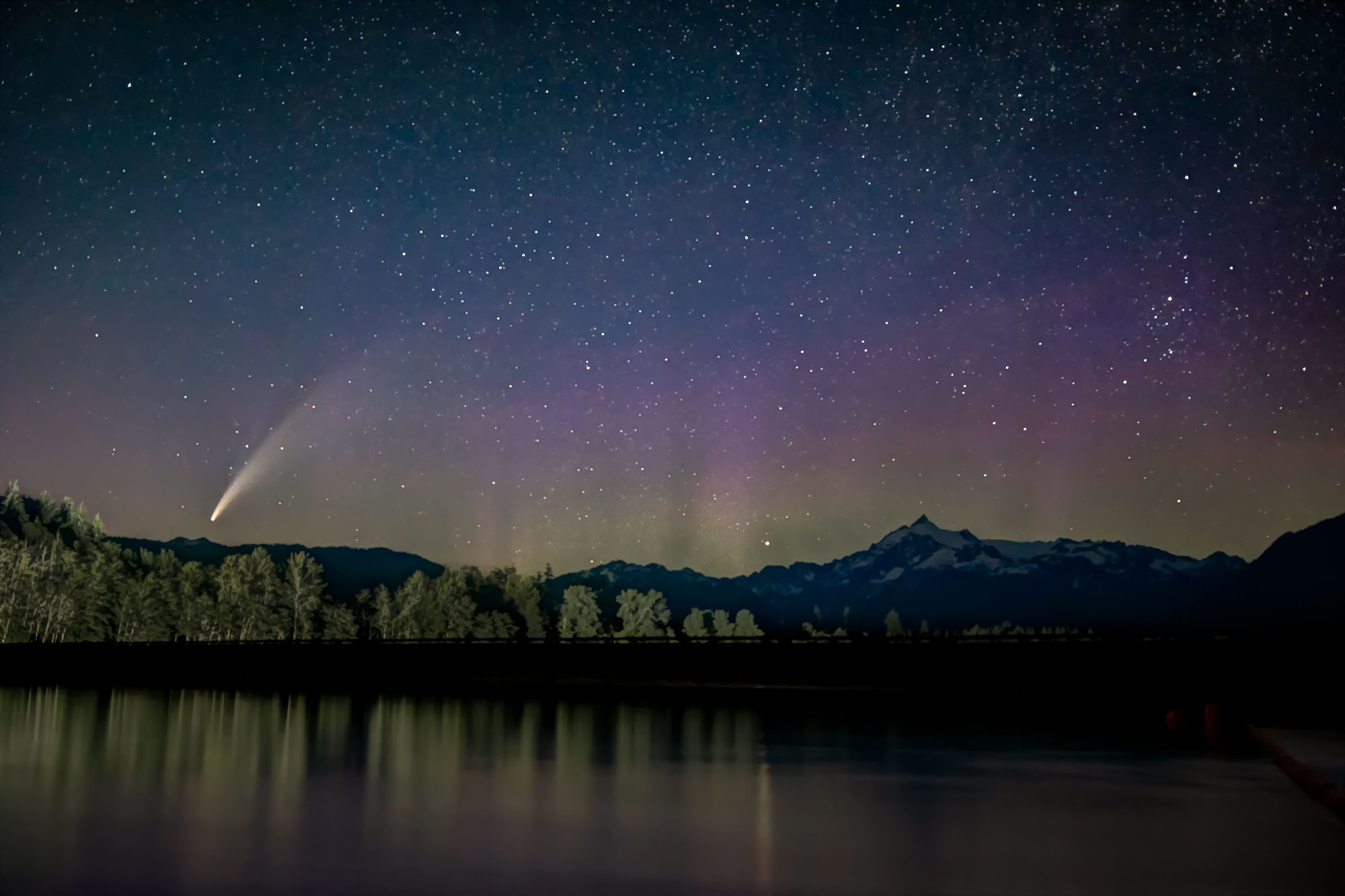 Encouraged by these images I went next up the Mt Baker Highway. It took a bit to find a good vantage point, but managed to get the comet as well as several other interesting night sky phenomena!