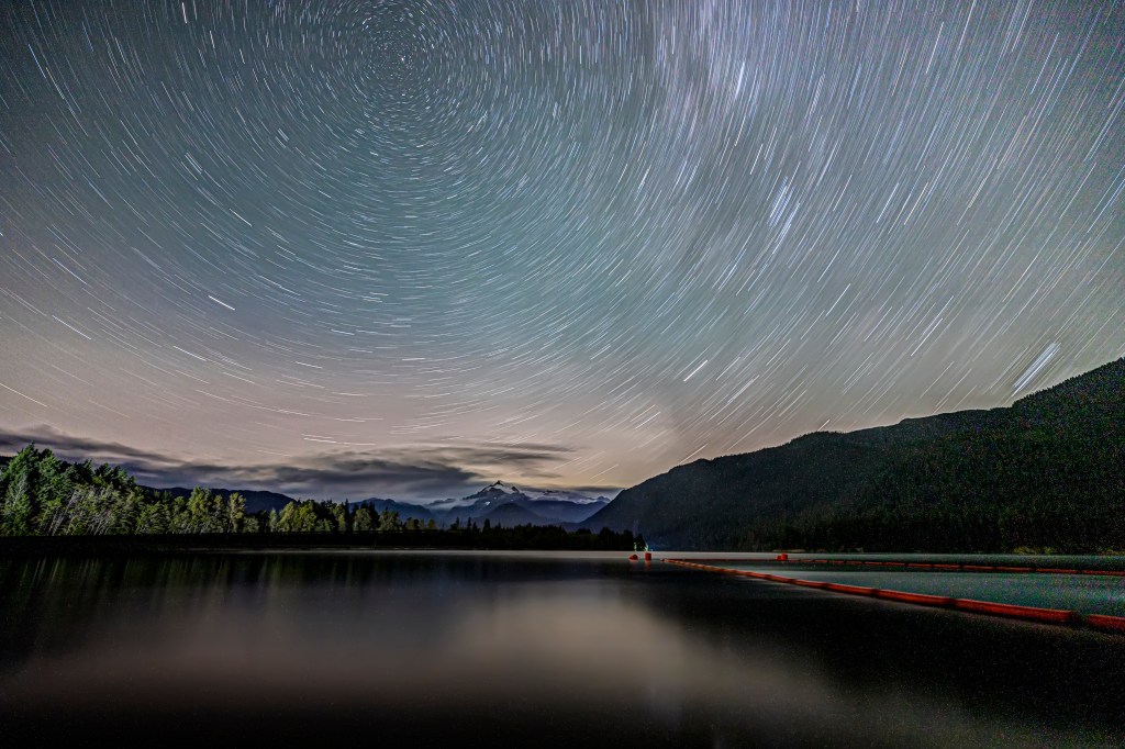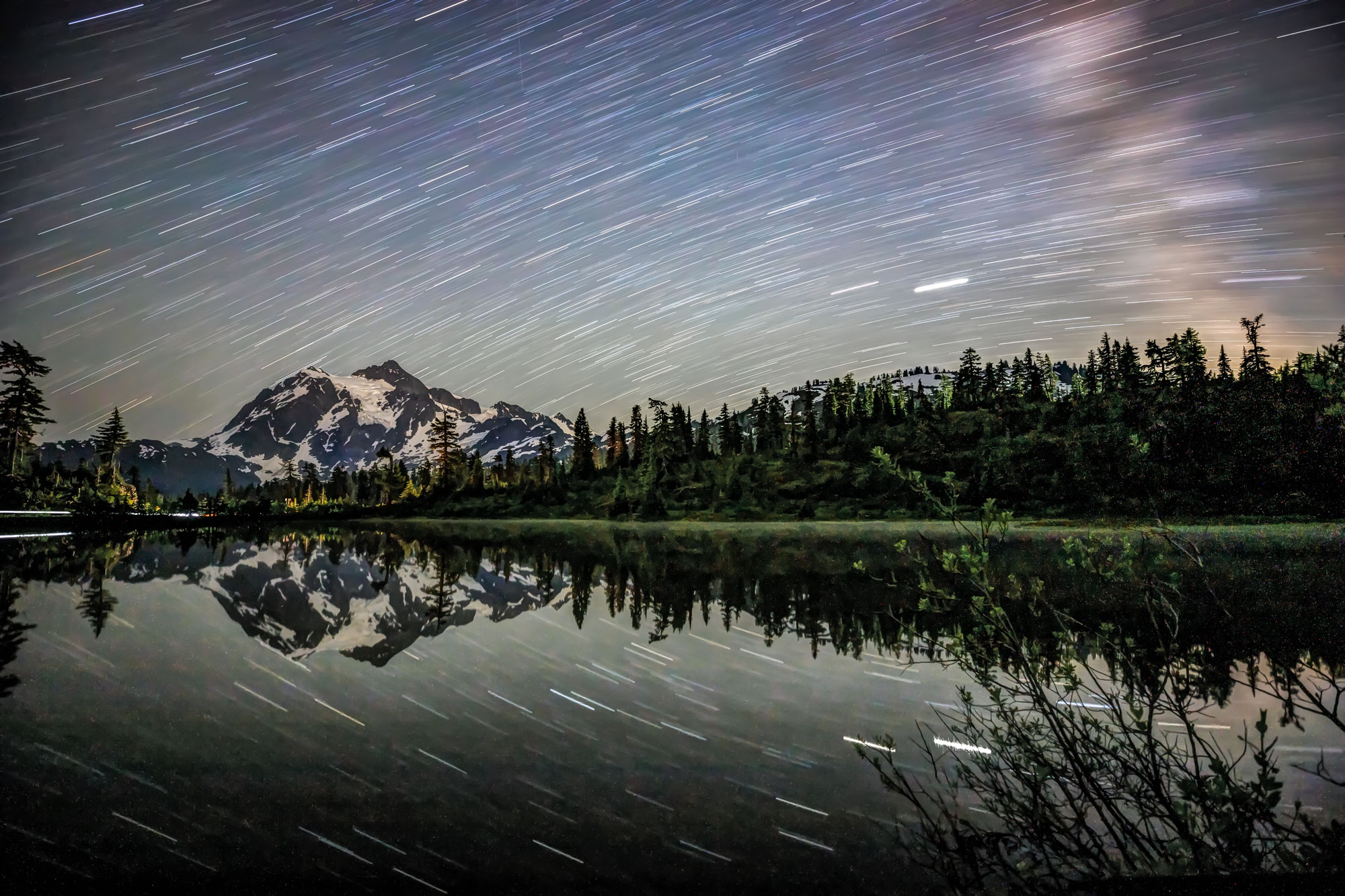 Picture Lake, on the Mt Baker Highway is a fantastic spot for Milky Way images, high elevation, dark skies and what a reflection! Notice how clear the stars are, especially close to the horizon at Picture Lake and Mt Rainier compared to the Samish Overlook…