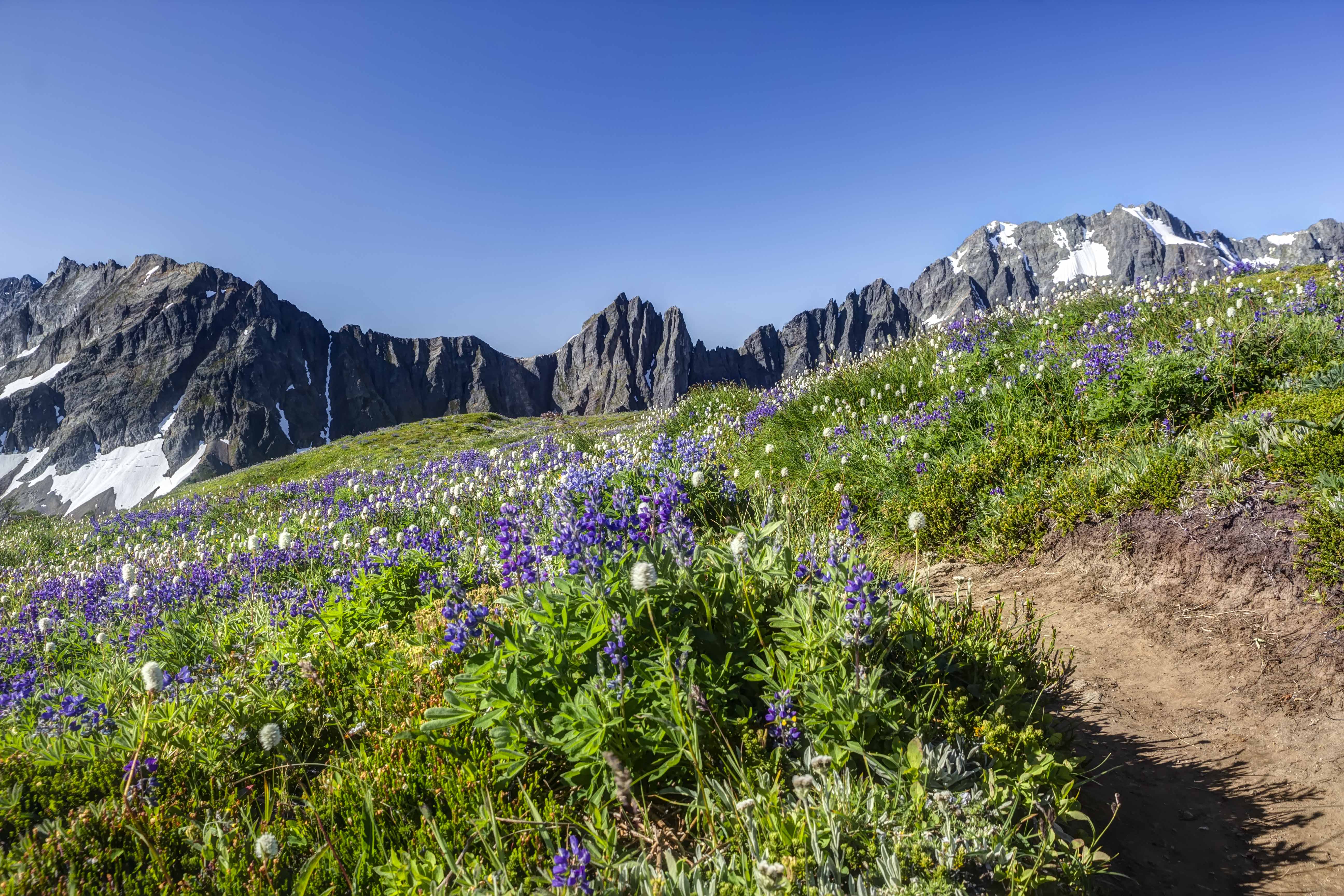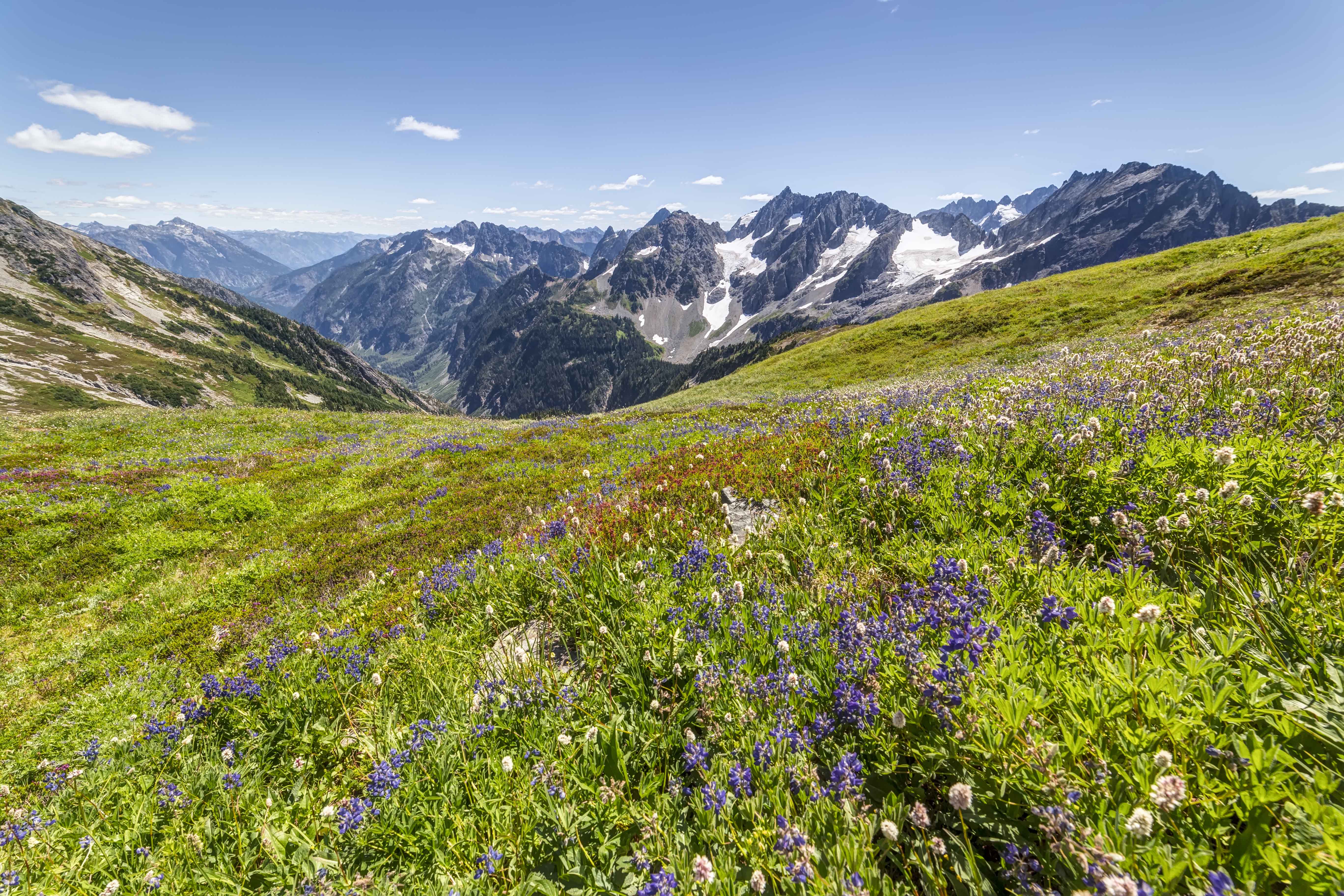 Wildflowers. Sahale Arm is truly upholstered in bright, crazy colorful wildflowers.