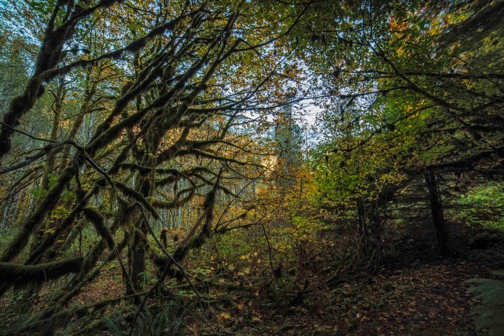 The Boat Launch has one very big, bright light, high up on a poll, illuminating the area at night. This is the source of the light on the trees.