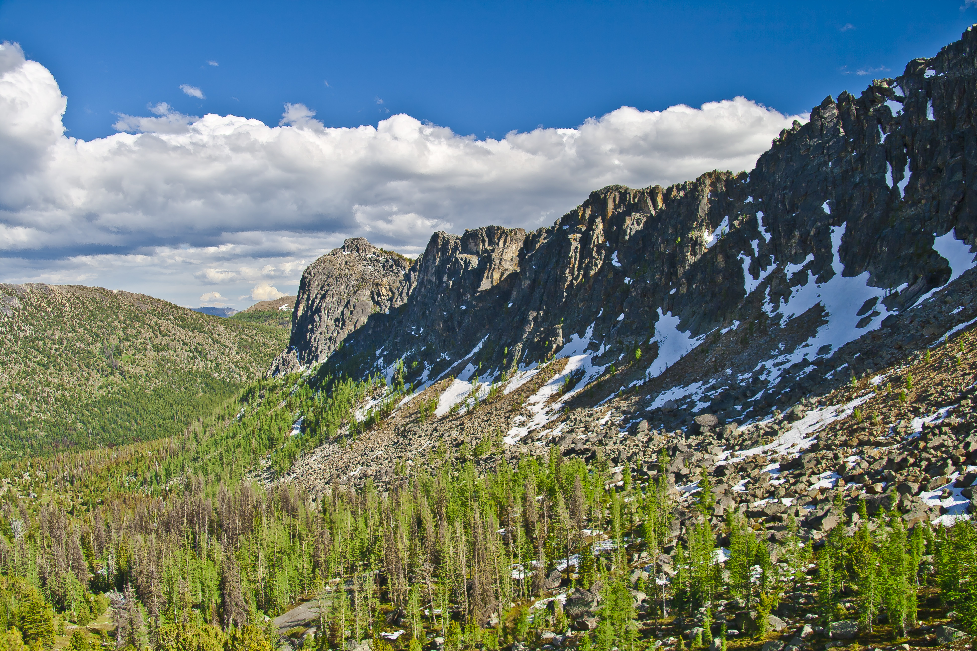 This was taken from the Three Fools Trail (AKA the Castle Pass Trail) as the trail traverses the side of the hill, just before the steep (and brushy!) descent to Big Face Creek. Pasayten Wilderness.
