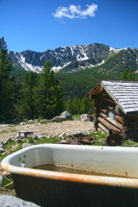 Nearby is a newer looking a-frame structure with an old bathtub sitting out front . It looked inhabited, and we looked around outside but didn’t see the miner or anyone else.