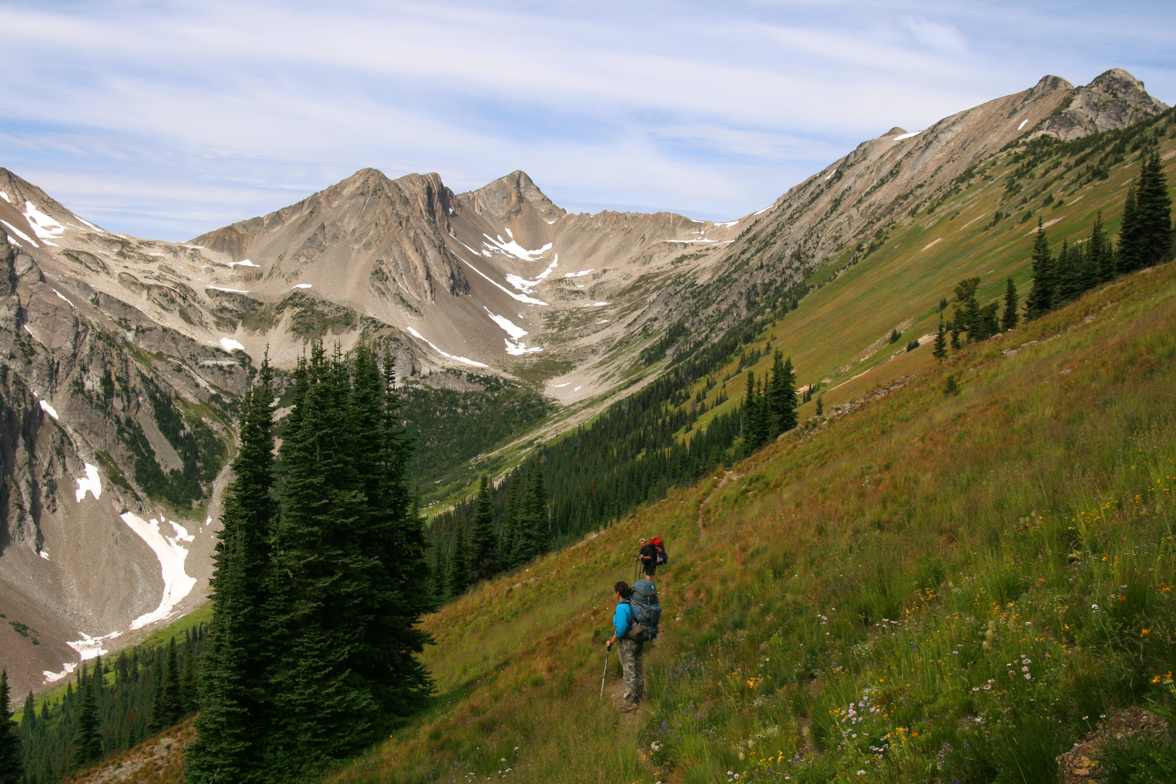 Early the next morning we were on our way, we stayed on the Boundary Trail, which maintains its elevation, traversing along the western side of Bauerman Ridge, through Scheelite pass and again traversing along Wolframite Mountain.