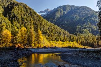 The Baker Lake Road extends 25 miles North from Highway 20 ending in a parking area along side Baker River. There are trails along the Baker River and around the lake.