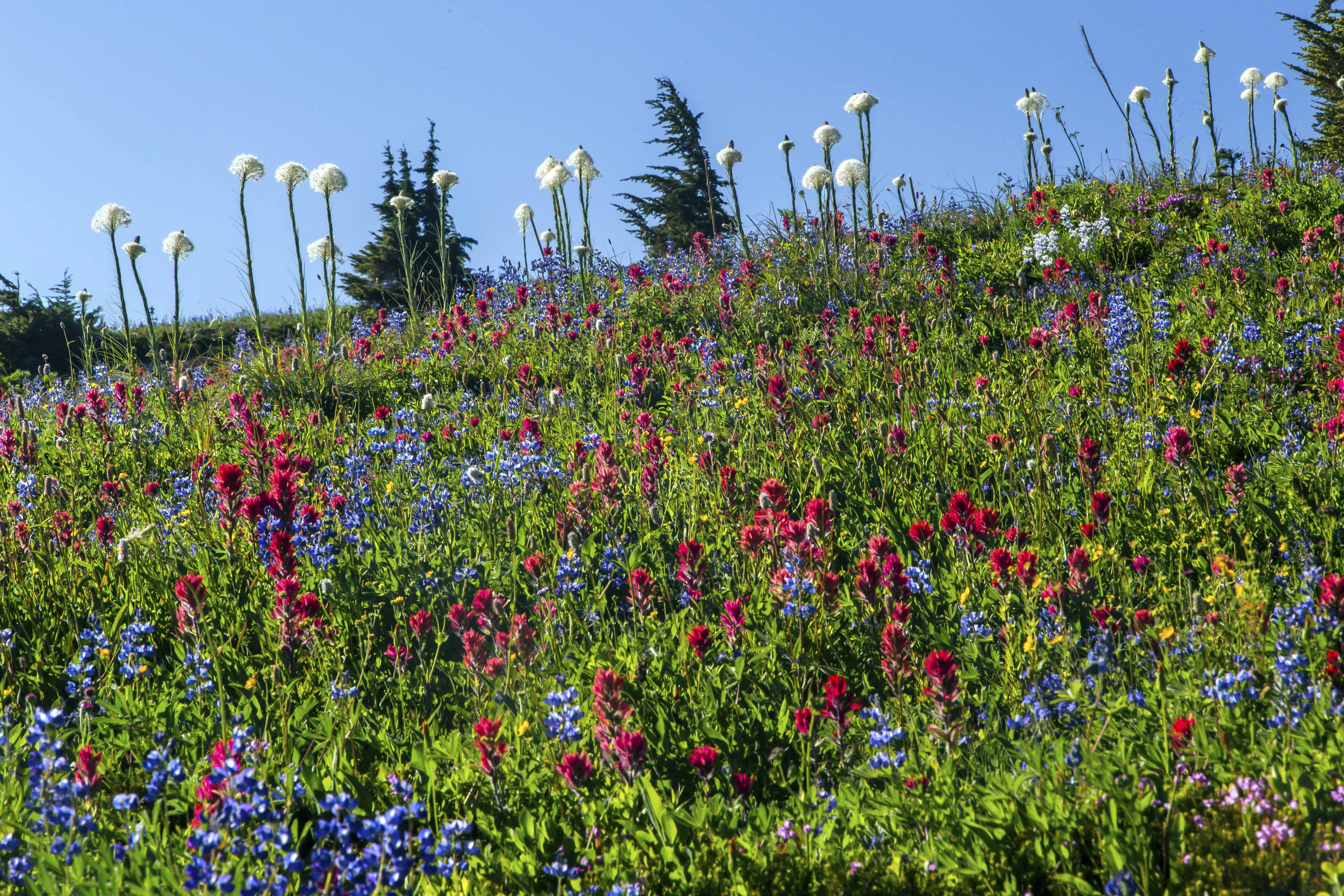 2. Goat Rocks Wilderness. The south side of the Goat Rocks, along the PCT near Snowgrass Flats has some of the brightest, most colorful, died and gone to flower heaven displays.
