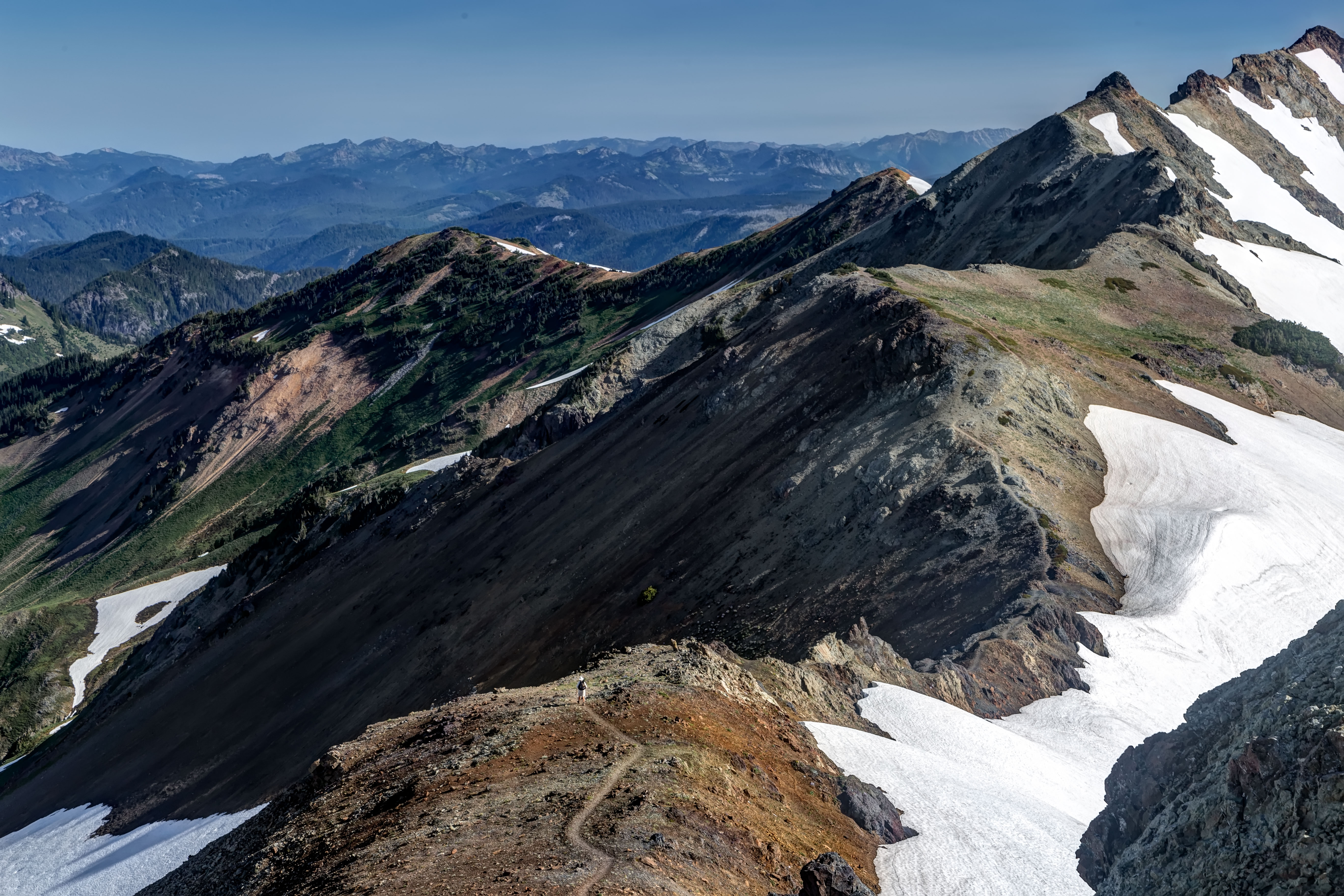 We entered the wilderness at Snow Grass Flats, hiked up to an intersection with the Pacific Crest Trail, and hiked north to the highest point along the PCT in Washington, a place called the Knifes Edge.