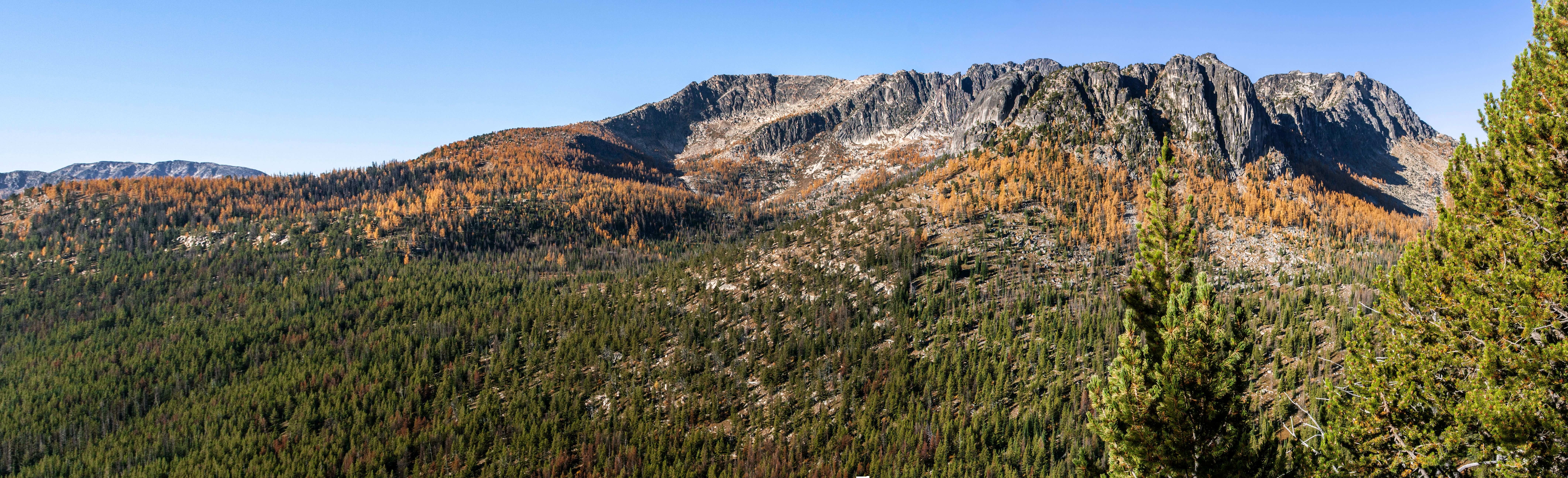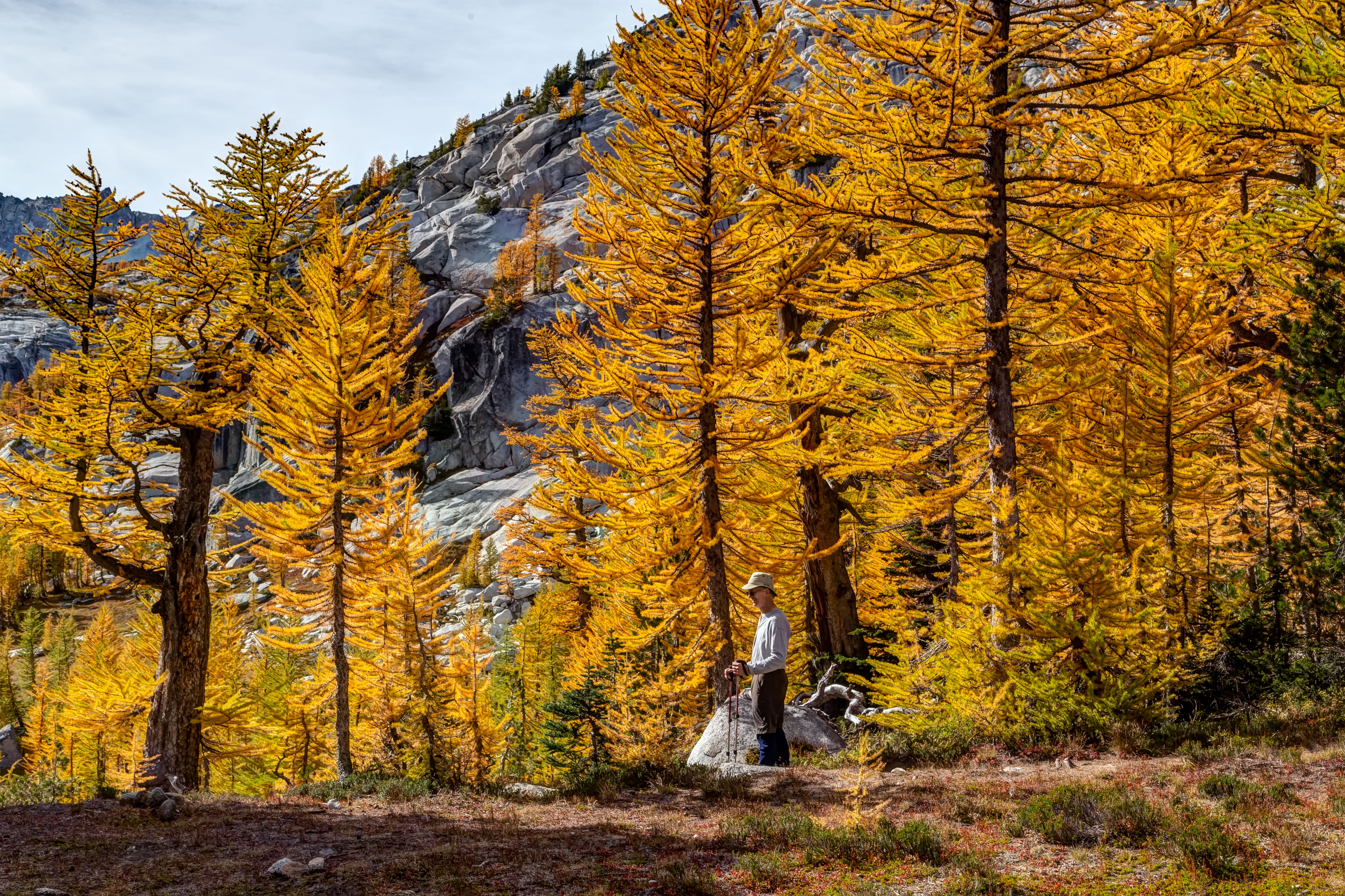 Each turn of the trail elicits a new sense of wonder. The larch thicken as we descend.