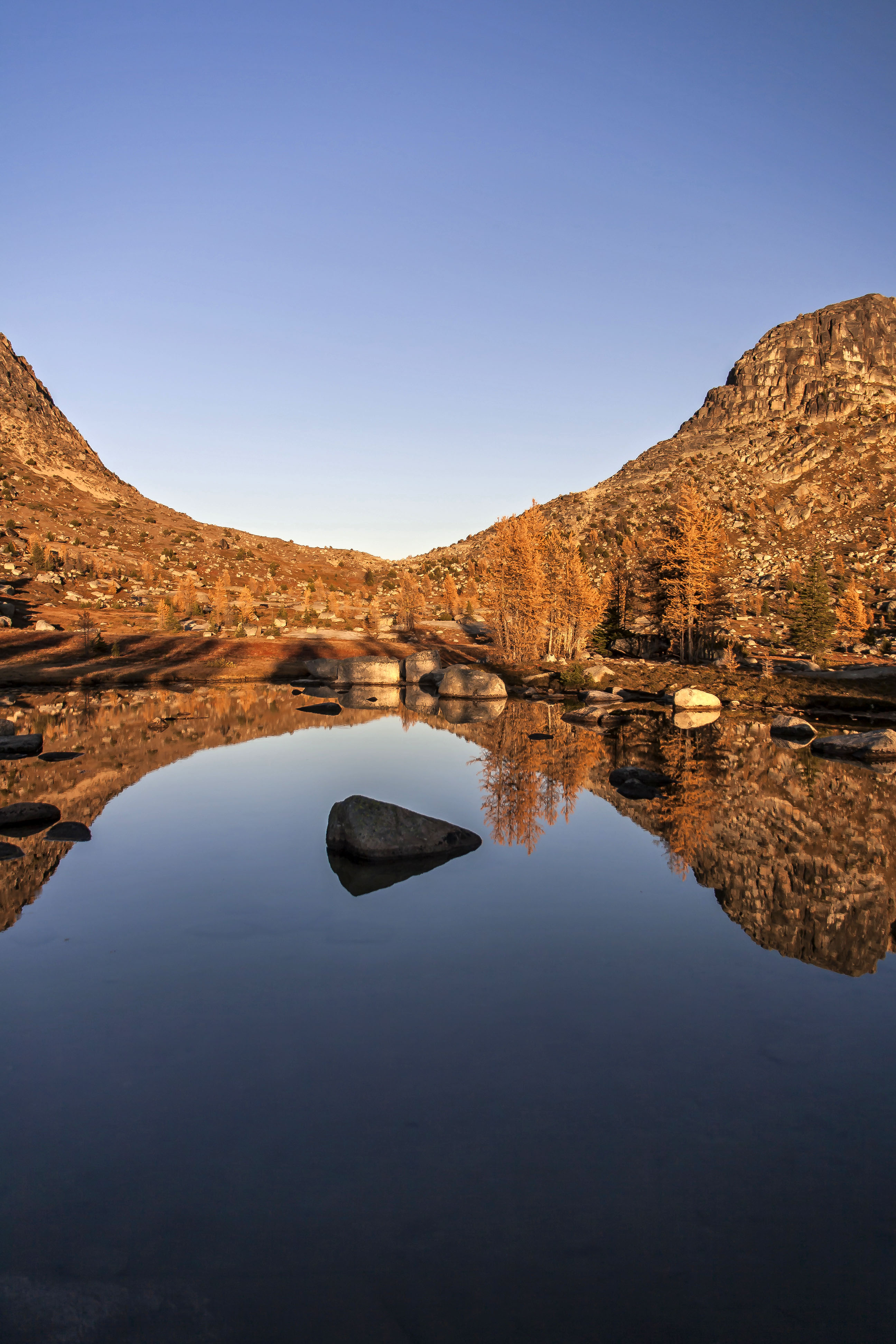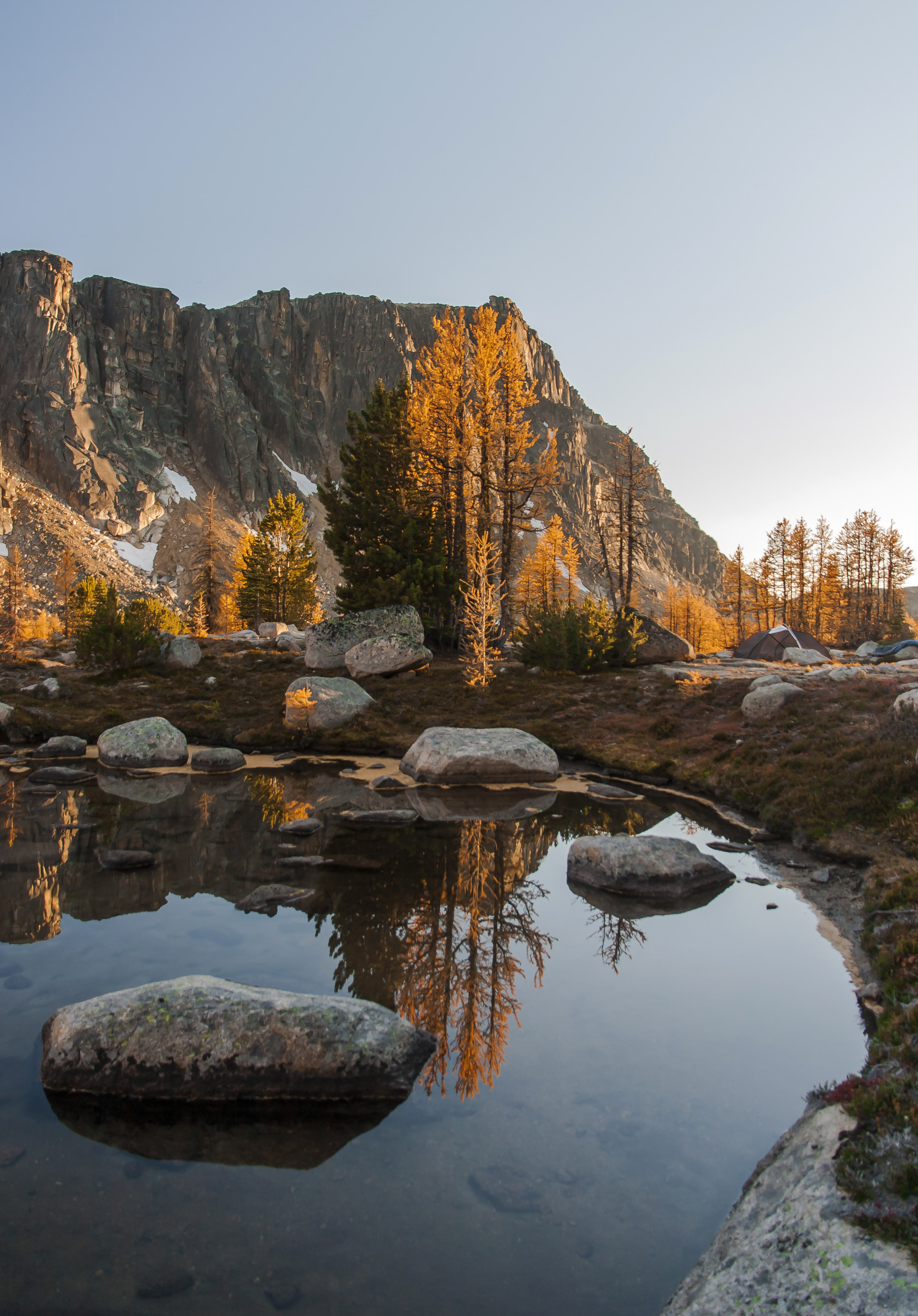 The main contributors to Fall here in the North Cascades are the blueberry/huckleberry bushes, which carpet the mountains in bright reds and the larch, who’s green needles turn bright orange in the first week or October. . .