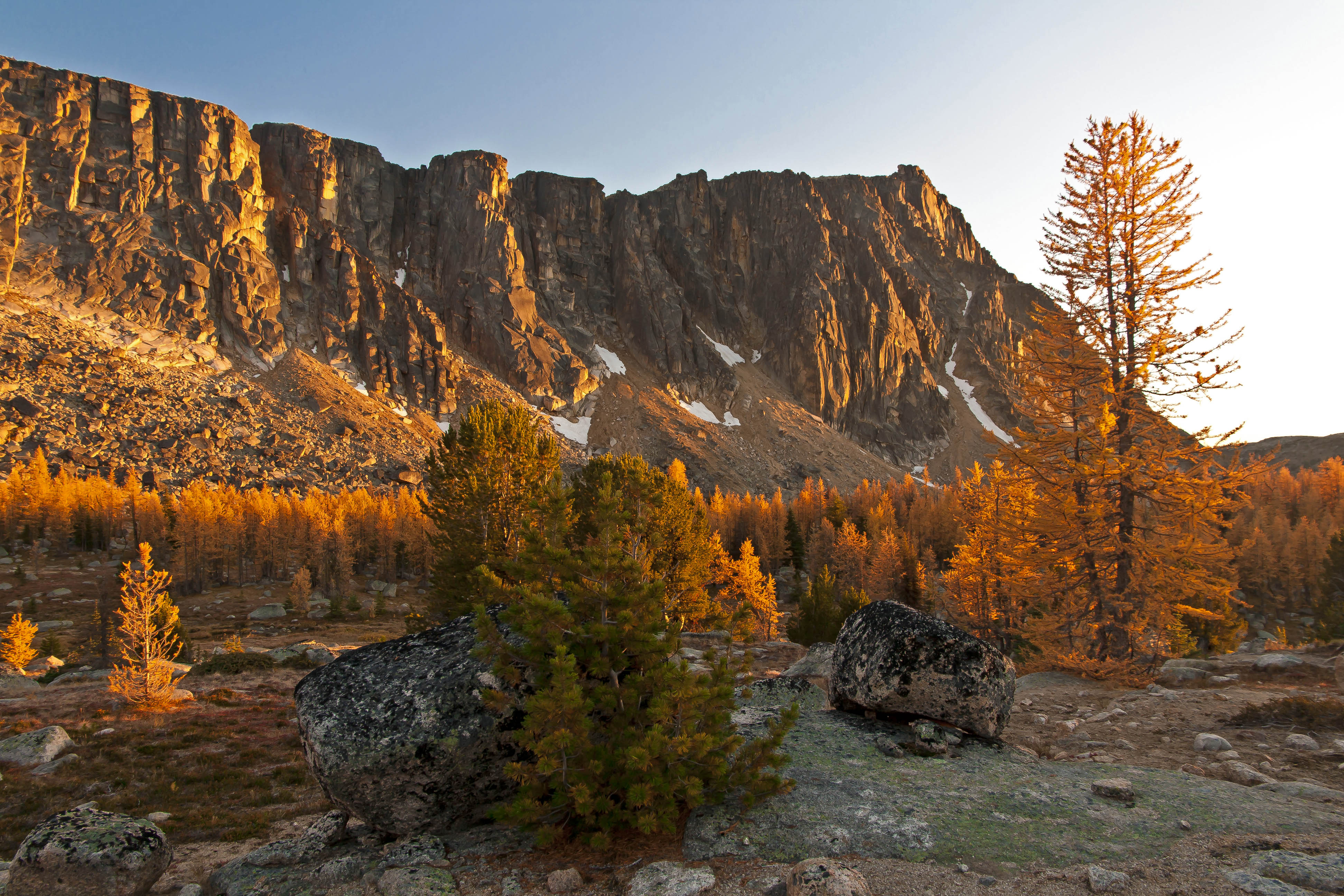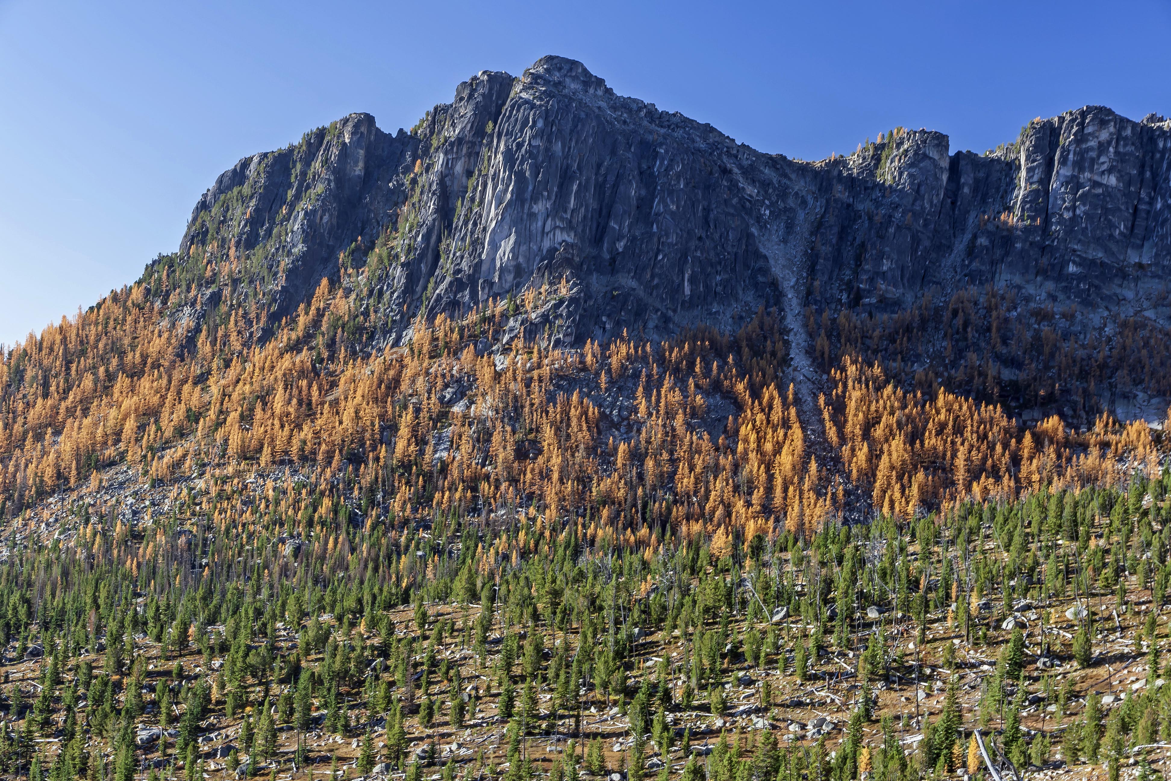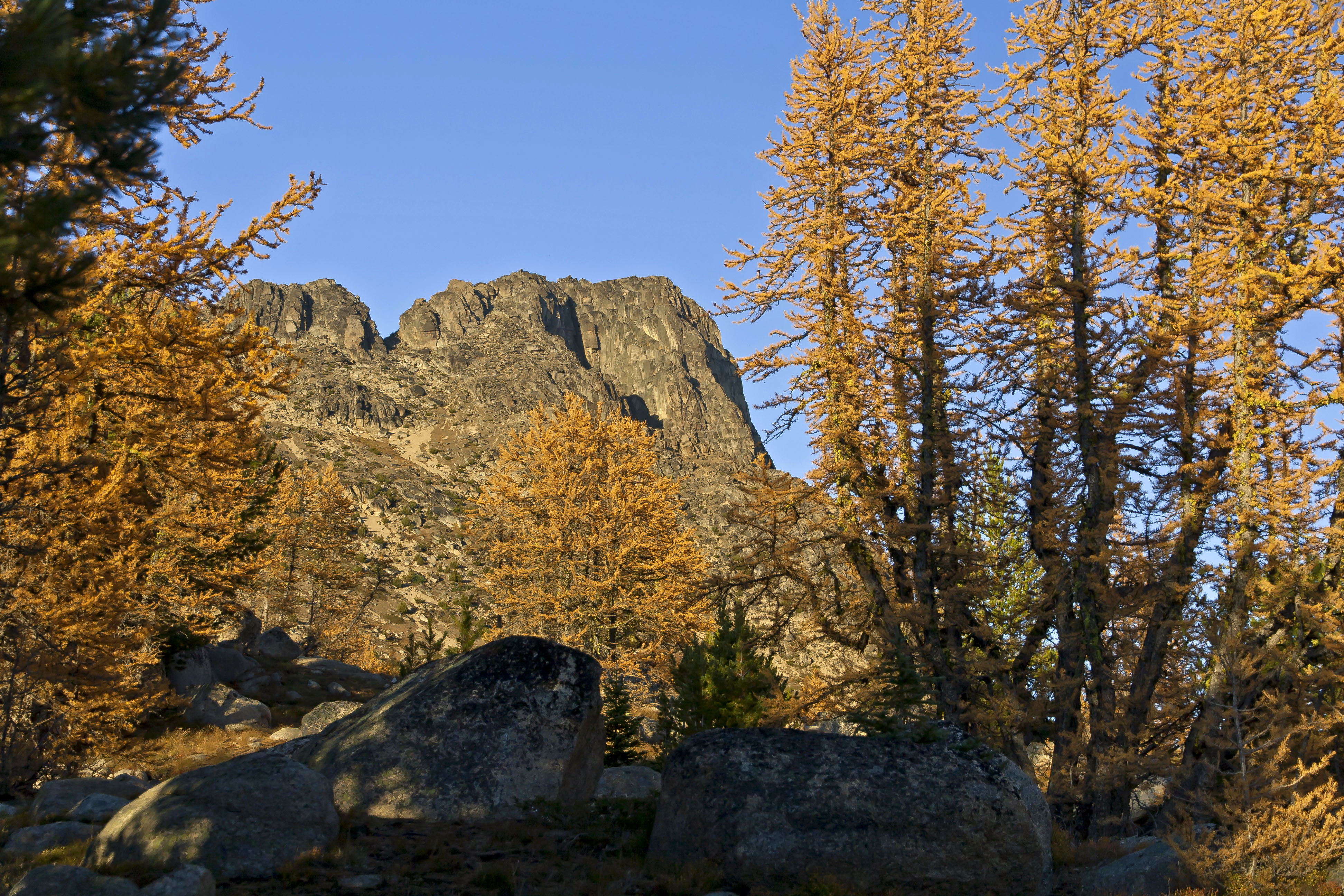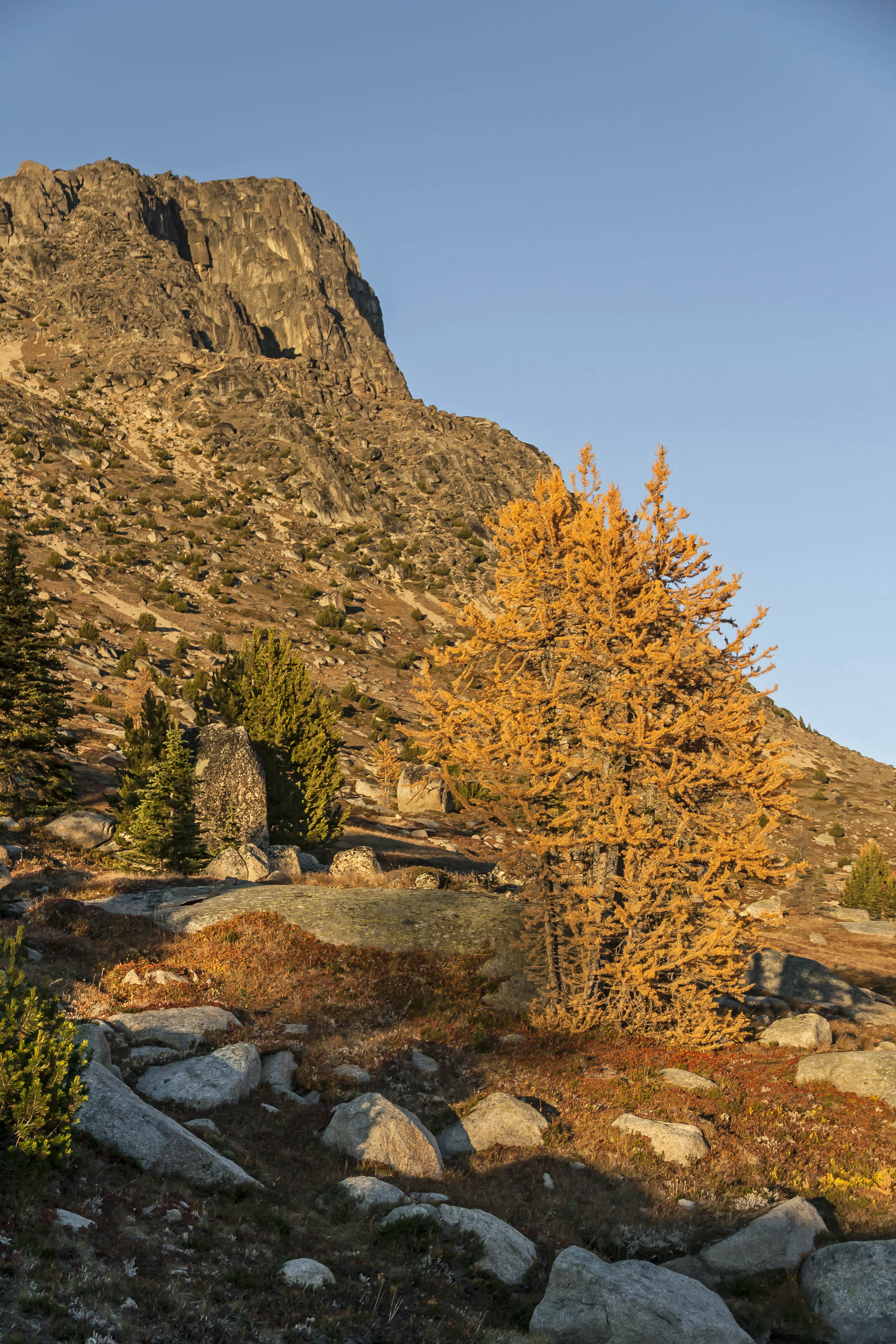 Larch grow new green needles each spring, and in early October they turn orange and fall off! The elevation of the larch varies in Western Washington, usually you can find the larch between 5,000 and 7,000 ft elevation.