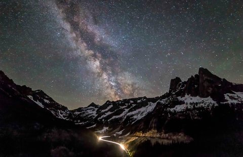 Washington Pass Overlook is also a fantastic spot for Night Sky Imaging. Its deep in the mountains, as there is low light pollution, the Lookout faces south, and you have Liberty Bell as a foreground, but also the hairpin turn of the North Cascades Highway below…
