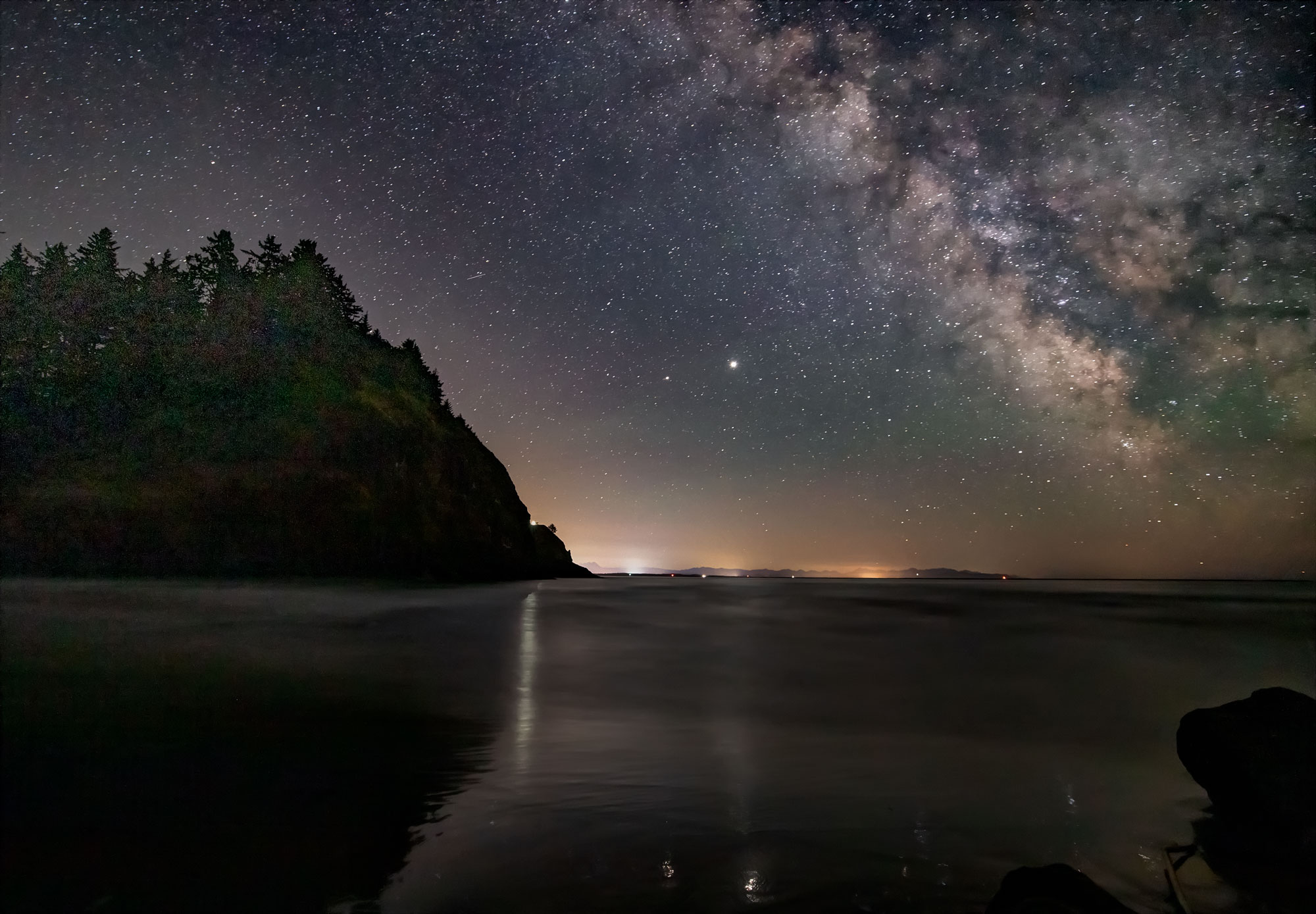 The beacon of the South Lighthouse is visible, as well as the line of ships leaving the bay with the high tide. The two bright stars, to the left of the Milky Way are Saturn and Jupiter…
