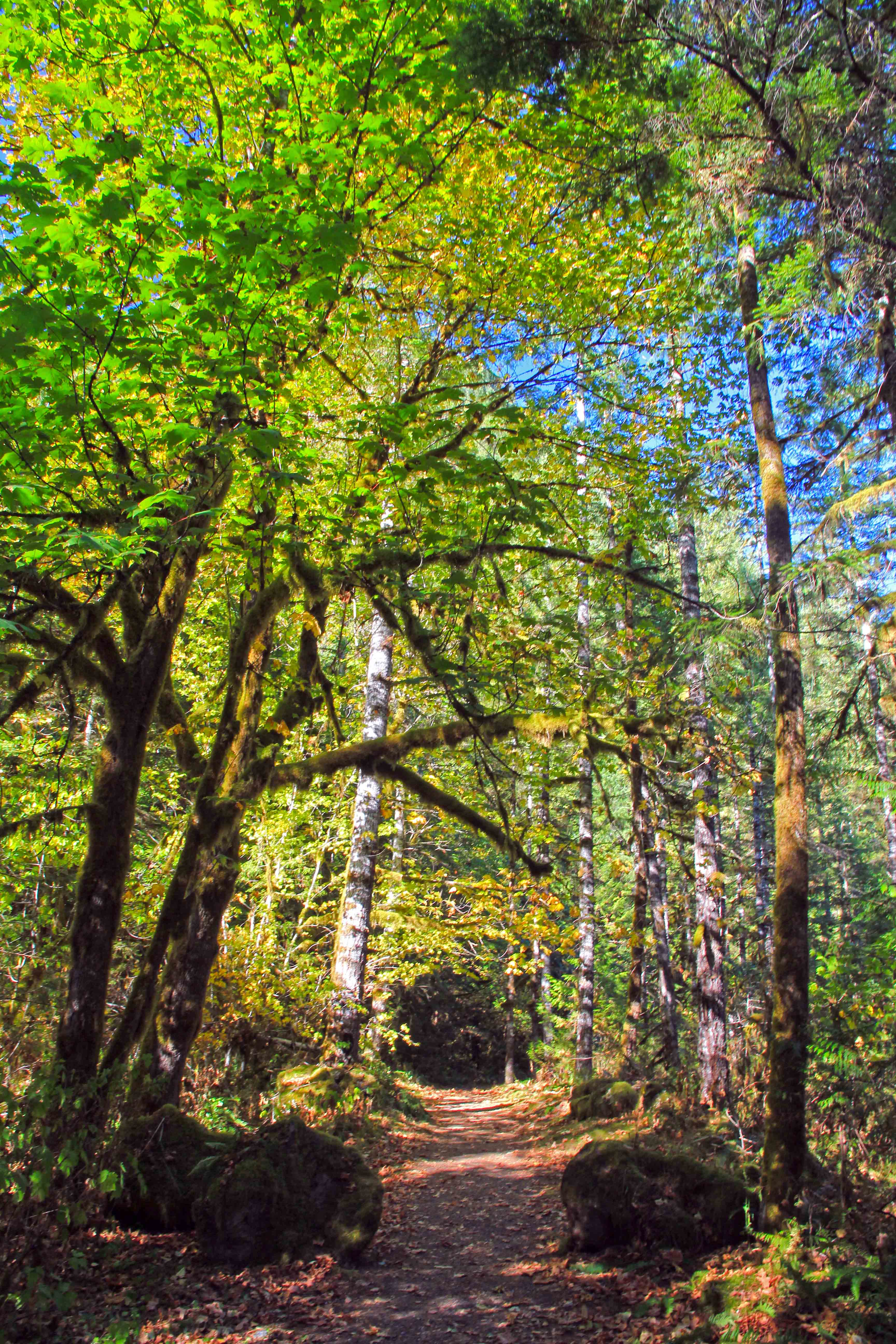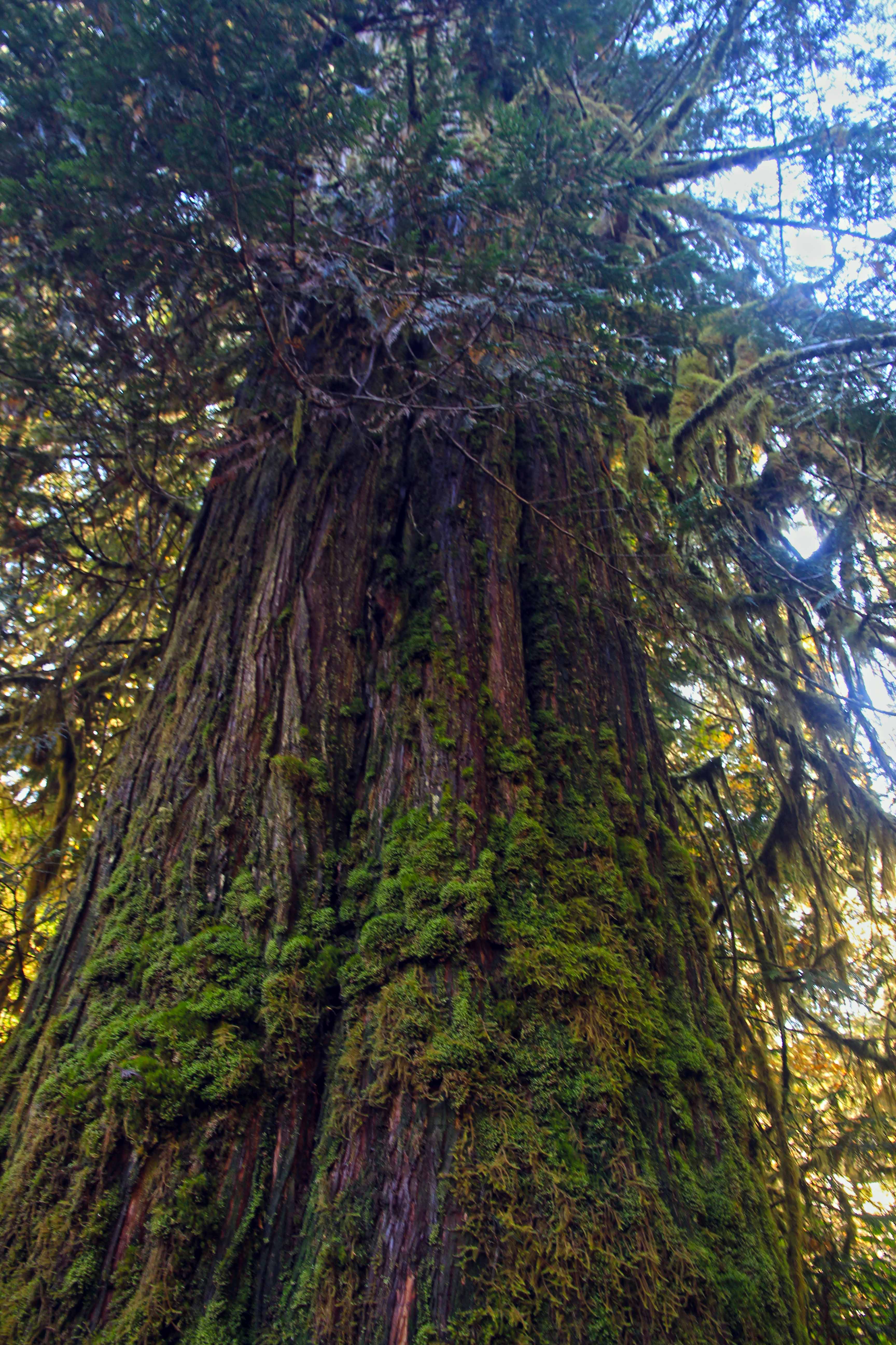 Skirting along side the river you pass several mammoth old-growth trees.