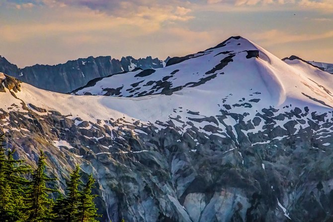 The view is quite dramatic, with Mt Shuksan looming above on one side, while the huge snow cone of Mt Baker sits by at arms reach.