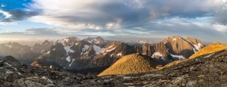 Sahale Glacier Camp sits at the base of Sahale glacier atop 3 piles of rubble each crowned with a ring of stone. The views are breathtaking: a 180 degree sweeping view of the North Cascades, a sea of peaks stretching out to the horizon.