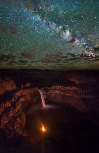 Palouse Falls is a wonderful spot for Night Sky Imaging, its very remote and scenic. Someone started a campfire in the basin that night, and that’s where the wonderful illumination comes from in this shot.