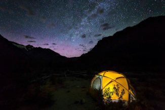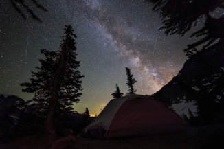 Sahale Camp, North Cascades National Park This is the highest camp site in the North Cascades National Park, at more than 7,500 ft. The view is facing south. 30 second exposure, my friends in the tent had the light on for 1 -2 seconds. Any longer and the tent would be over exposed.