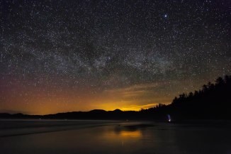 First Beach, Olympic Coast This is First Beach, in La Push, down the road from Forks. I used this huge stump to block the light pollution from the small village. This was taken in January, and the Milky Way is faint.