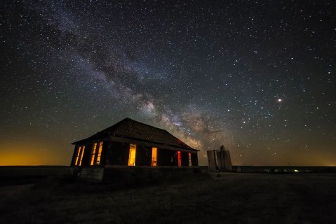 Govan School House. Located near Wilbur on Hwy 2, this remote abandoned building was perfect for night sky. We illuminated the inside with a Coleman Lantern and a few other orange/yellow lights. I would love to find some more old building or barns to do this again!