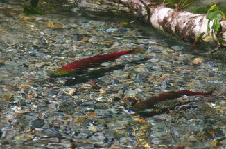 In early August expect to be wading through a river filled with salmon. It is quite a sight. From there its an easy hike to the junction with the Whatcom Pass Trail, and so you can make a loop out of the trek.