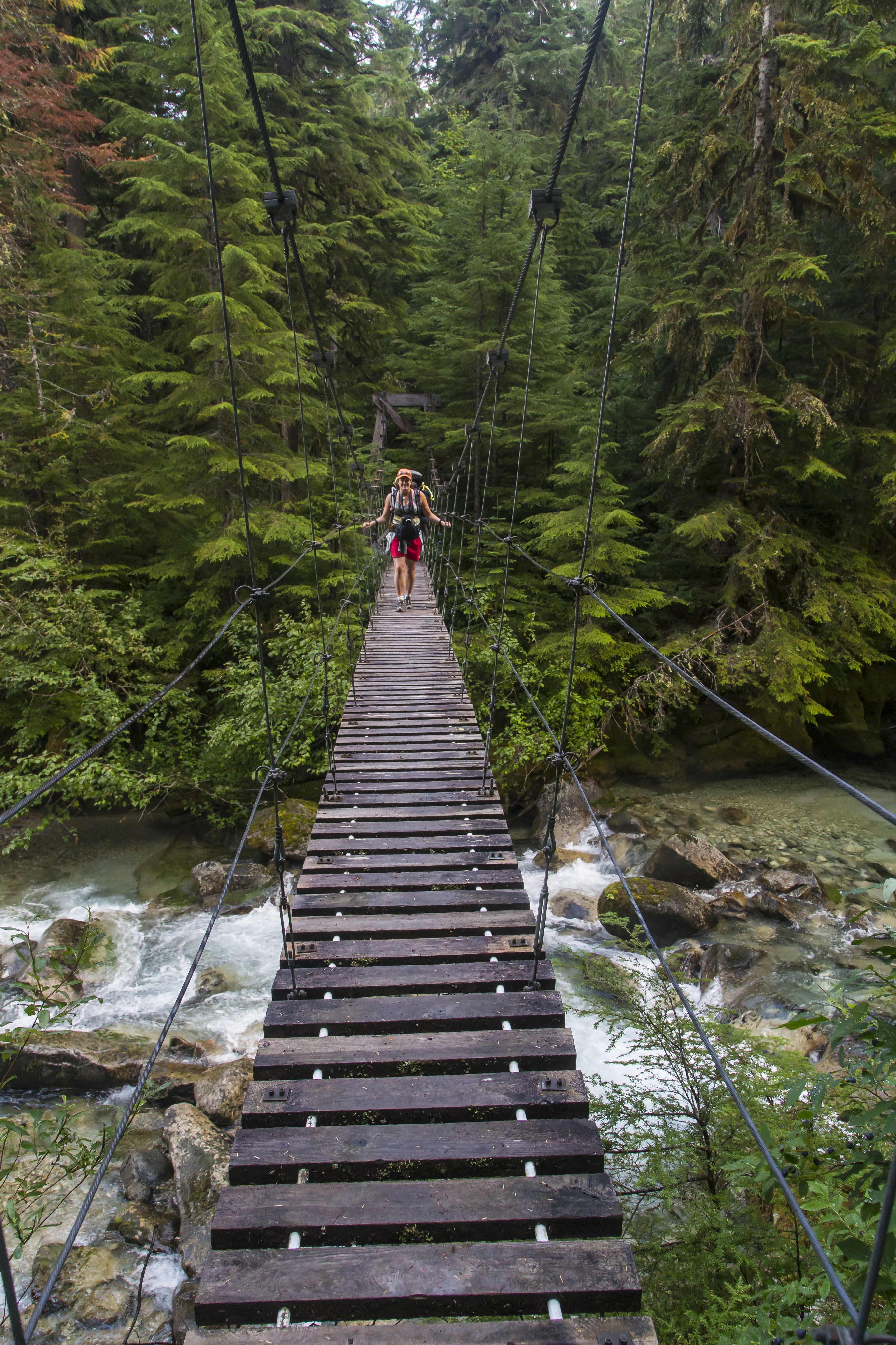 Once back at the junction we’d passed the day before my path turned upstream, headed to Hannegan Pass to complete the loop. Fording the Chilliwack is now a more daunting proposition, the valley steeper and more narrow. Hikers are afforded two choices: to ford the waist-deep waters or to pull yourself across in an aerial cable-car!