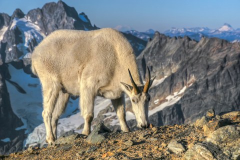 These three images are from my favorite camp site in Washington, Sahale Glacier Camp, North Cascades National Park. The camp sits at the toe of Sahale Glacier, atop three mounds of glacial rubble. Mountain goats frequent the camp, posing before the vista.