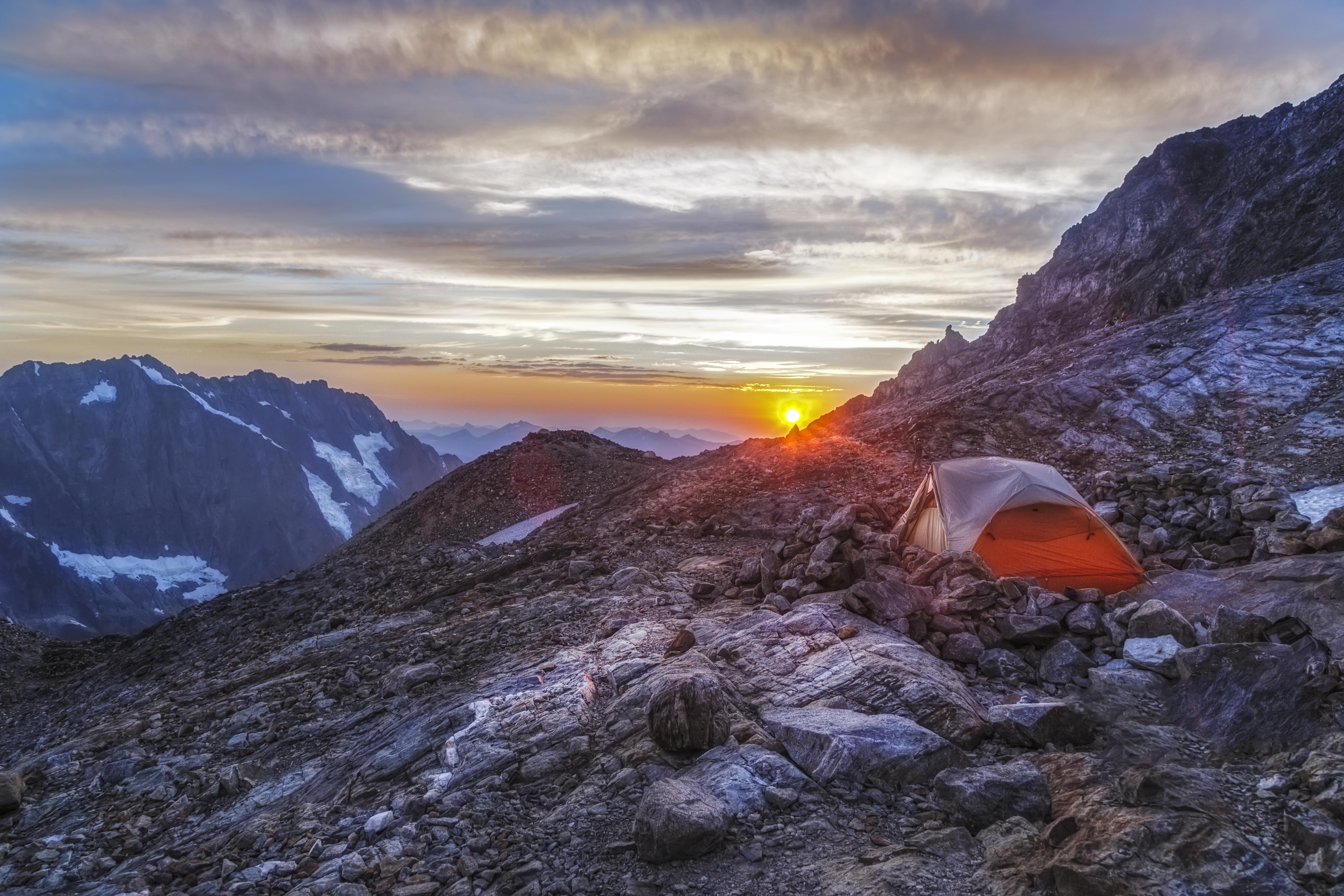 Morning at Sahale Glacier Camp Sahale Glacier Camp in the Steven Mather Wilderness in North Cascades National Park, in Washington.