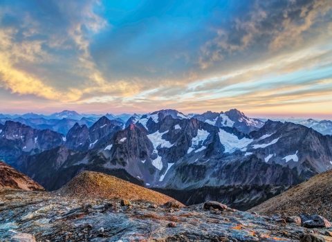 Morning at Sahale Glacier Camp 1 emAndyPorter_sahalesunset_LandscapeSahale CampSahale Glacier Camp, North Cascades National Park Panorama Sahale sunrise_Panorama1emMorning at Sahale Glacier Camp 2 em