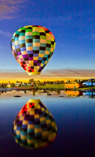 There was a display of antique cars, live music, and of course the balloons. The event was held in a field where they had carefully laid down a thick sheet of plastic and covered it with water to create a reflective pond specifically for the night glow event.