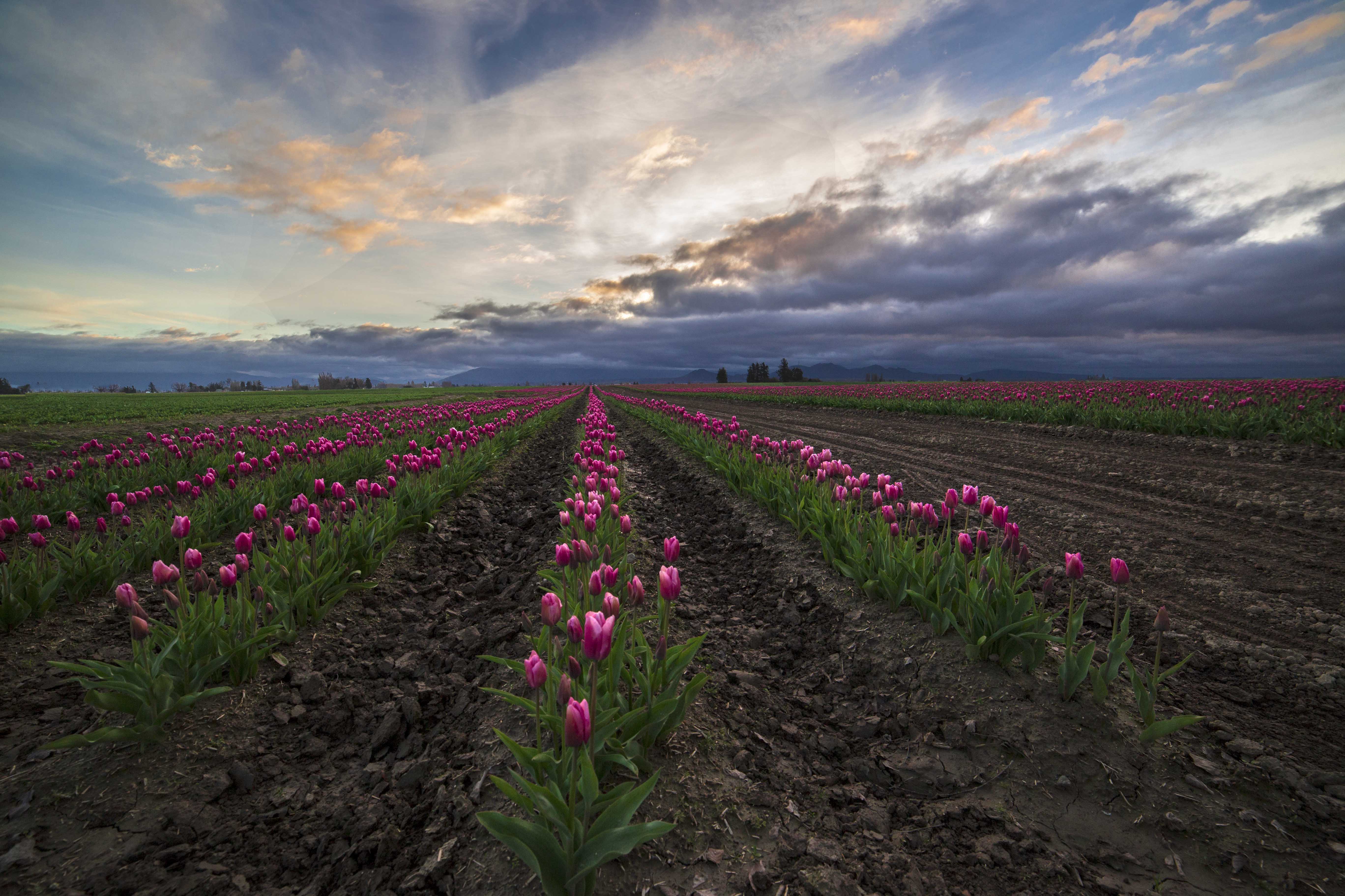 The best time of day to visit the tulip fields is early morning or late afternoon. The low light and clouds offer some incredible back drops for the flowers.
