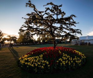 For year round access the view from the Samish Overlook is not to be beat. The overlook is located near the Alger exit on I-5. You need a Discover Pass. There are rest rooms at the Overlook and a trailhead leading to Oyster Dome and other places.