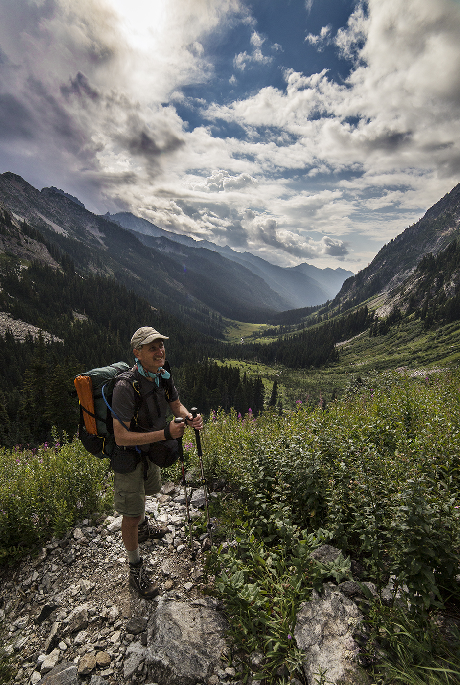 The sky was very dark and as we made our way down through the rain we encountered another hiker, who passed us by, on the same loop as us. Our paths would cross several times on our hike. His name was Steve and he had hiked more trails and miles in the North Cascades than anyone I had ever met.