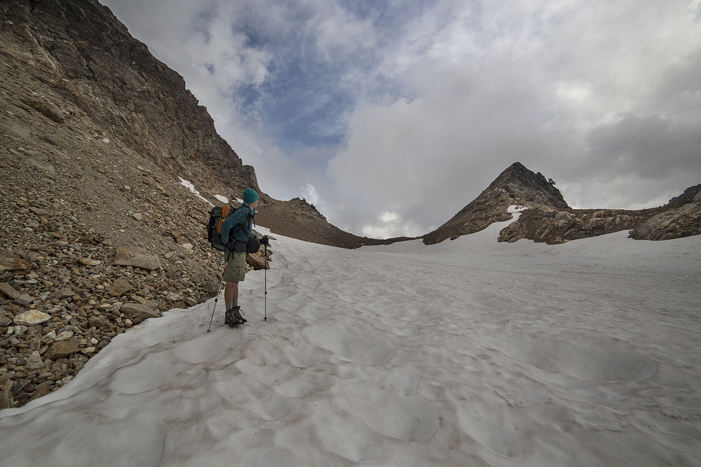 The hike took us through Spider Meadows, then up through the narrow defile of Spider Gap and down into the stark basin of Upper Lyman Lake.
